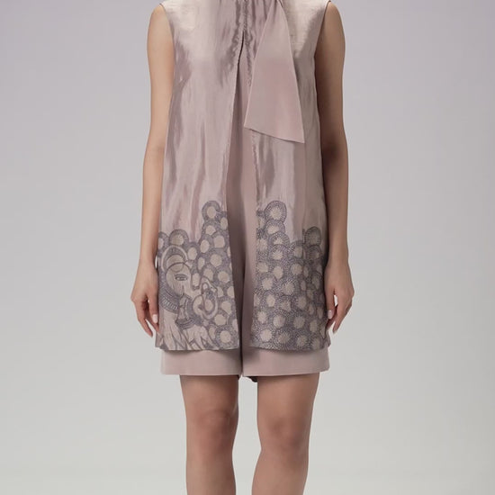 Slip into effortless style with this layered jumpsuit. The soft overlay moves with you, while a high neckline and subtle embroidery bring quiet charm. Easy, chic, and full of personality.