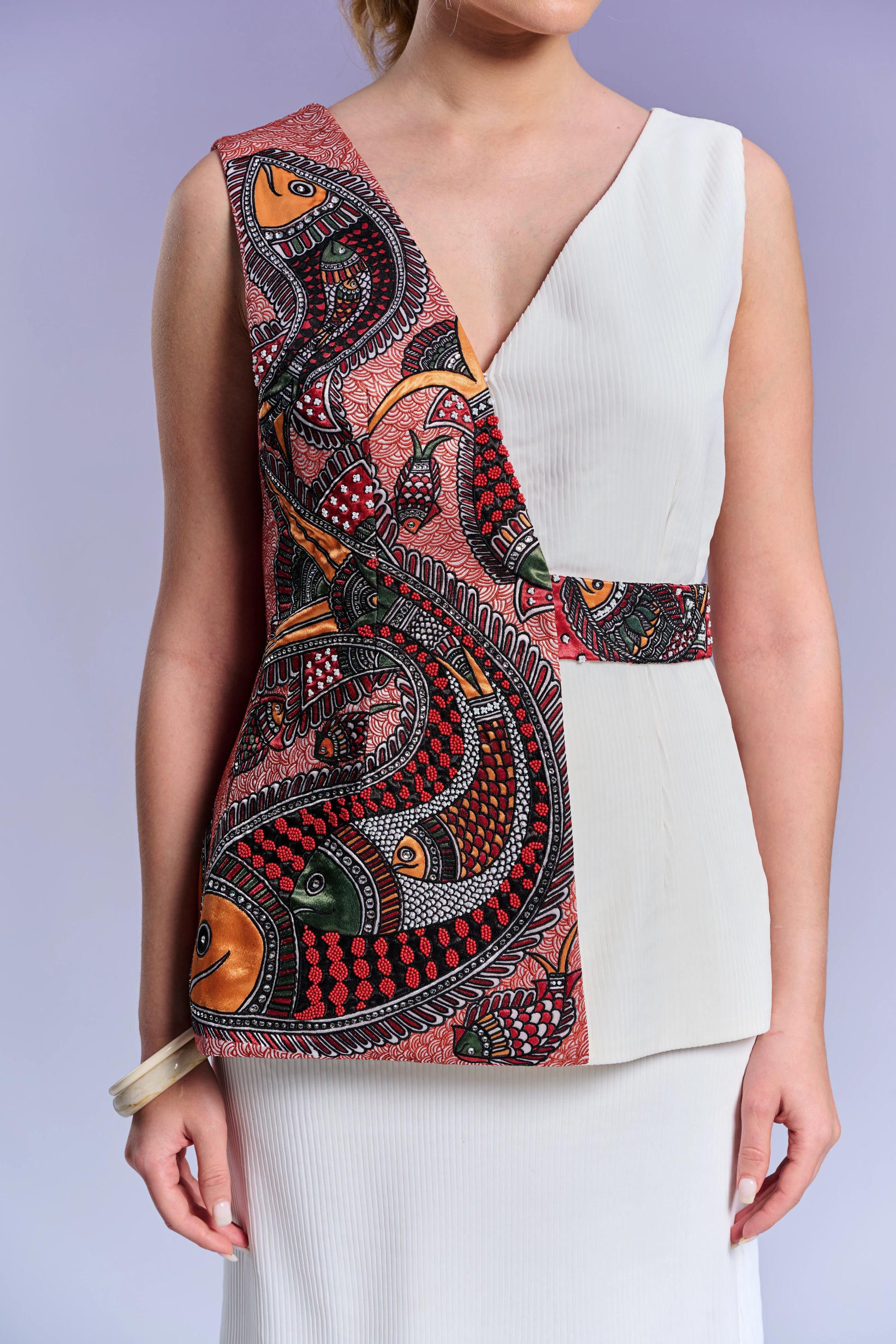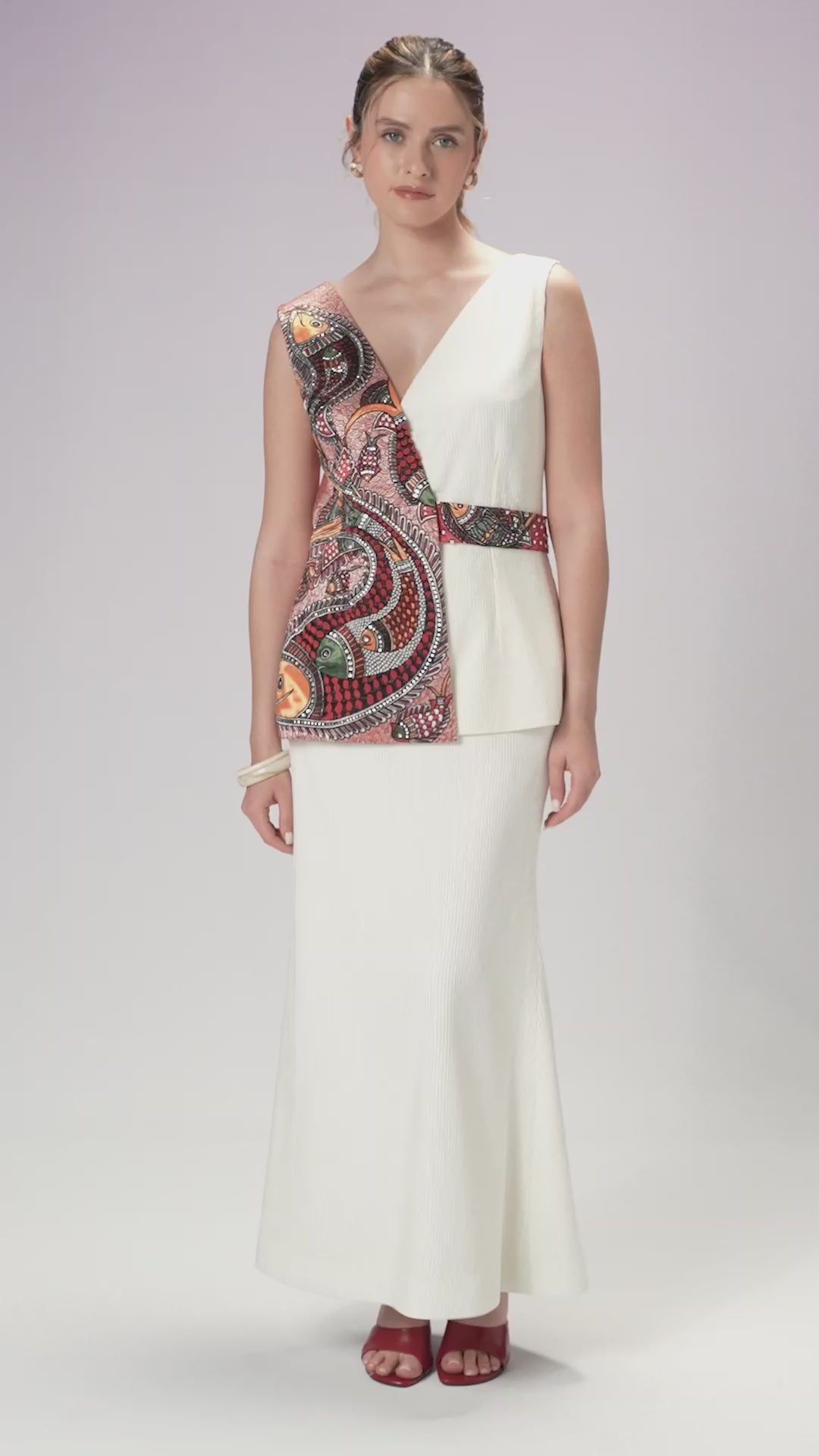 A striking set that plays with contrast - with fish motifs on top paired with a fluid skirt for an effortlessly elevated feel. Bold in detail, easy in vibe, made to stand out.